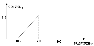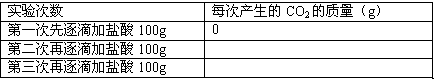 ②根据表中数据在坐标系中画出CO2质量(纵坐标)与所加入盐酸质量(横坐标)的关系图。