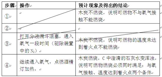 [实验目的]验证木炭发生燃烧的另外两个条件中,缺少任何一个条件都不能燃烧(两个条件须分别验证)。