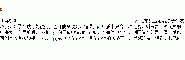 B. 单质中只含一种元素,则只含一种元素的纯净物一定是单质