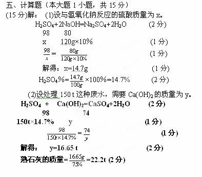(2)该工厂每天用含氢氧化钙75%的熟石灰处理150t这种废水,需要熟石灰多少t?