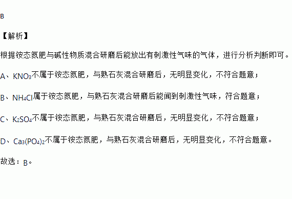 A.KNO3 B.NH4Cl C.K2SO4 D.Ca3(PO4)2