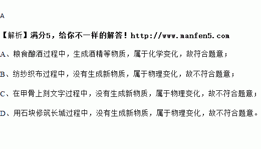 A. 粮食酿酒 B. 纺纱织布