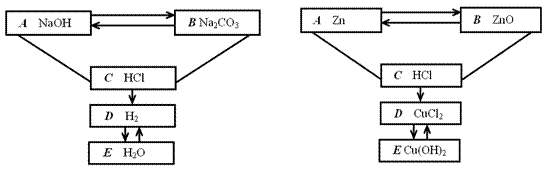 右图是物质化学性质的知识网络图,“—”表示相连的两种物质能发生反应,“→”表示一种物质转化成另一种物质。![]()