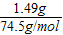 ②操作Ⅳ称量所得的固体为1.49g(不计每步操作损耗),请问该实验中氯酸钾和二氧化锰混合加热,产生了多少molO2?(根据化学方程式列式计算)