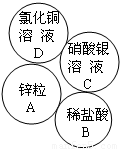 (1)用2个圆形表示C(硝酸银溶液)、D(氯化铜溶液)两种物质,将C、D两个圆画到图中A、B周围适当的位置,并标出物质;