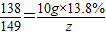 解之得:z=1.49g;r=0.73g;