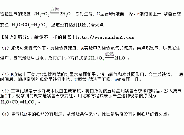 (4)集气瓶D中的铁丝没有燃烧,从燃烧条件来说,原因是_________。