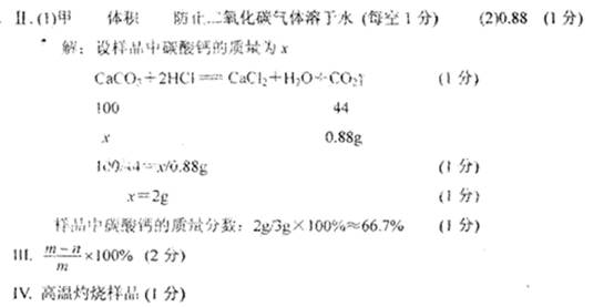 I 他们的方法是:(1)取3.0g样品放入烧杯;(2)加入足量的稀盐酸至恰好不再产生气体时,测定反应后生成的CO2质量;(3)根据CO2的质量求出样品中碳酸钙的质量及质量分数。