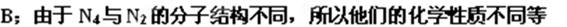 C.由于N4与N2的组成元素相同,所以它们的性质相同