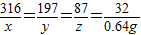 x y z 0.64g