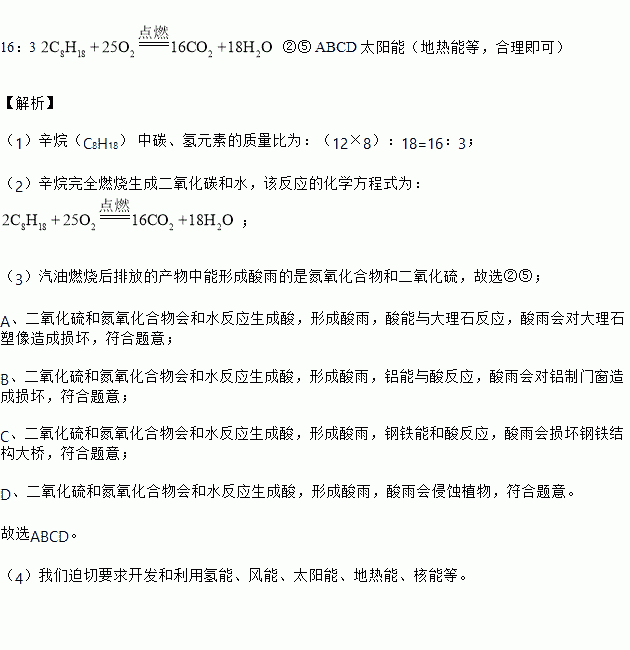 (3)汽油燃烧后排放的产物中能形成酸雨的是:_____(填序号);