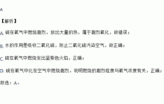 D.硫在氧气中比在空气中燃烧剧烈,说明燃烧的剧烈程度与氧气浓度有关