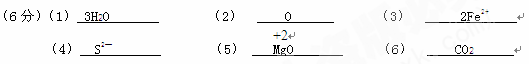 (1)三个水分子 (2)氧原子 (3)2个亚铁离子
