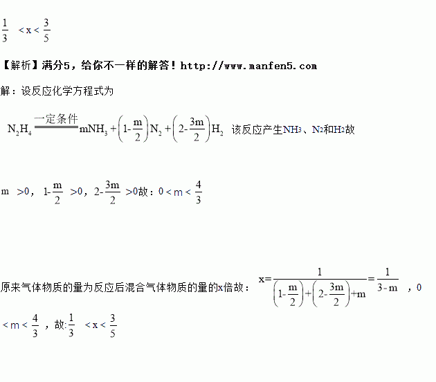 N2H4在一定条件下热分解,产生NH3、N2和H2,设原来气体物质的量为反应后混合气体物质的量的x倍,求x的取值范围。