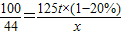 125t×(1-20%) x