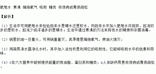 (1)生活中可用____________来检验自来水是硬水还是软水,通过___________的方法来降低水的硬度和杀菌消毒。