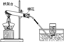 【解析】:(1)通过观察,可以看出A是铁架台,在图中标出名称,由图中棉花可以推出是用高锰酸钾为原料制氧气的,而且要用排水法收集氧气,把它补充出来,如右图: