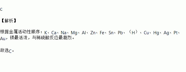 下列金属与稀硫酸(H2SO4)反应最剧烈的是 。