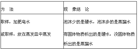 (1)泡沫少的是硬水,泡沫多的是蒸馏水
