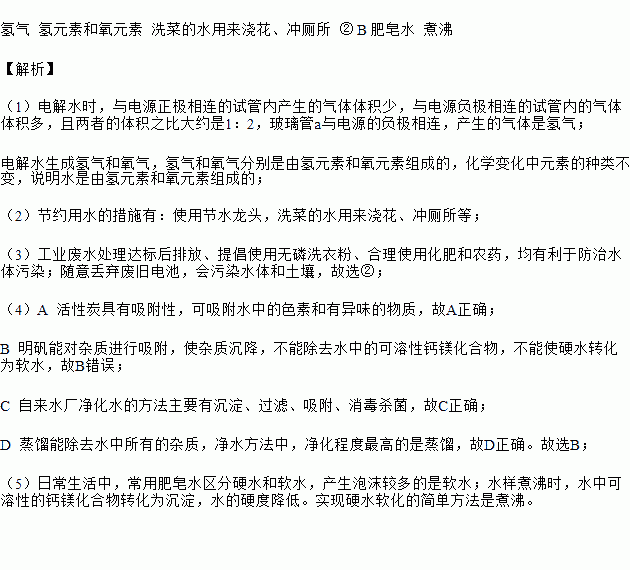 (5)日常生活中,常用_____区分硬水和软水,实现硬水软化的简单方法是_____。