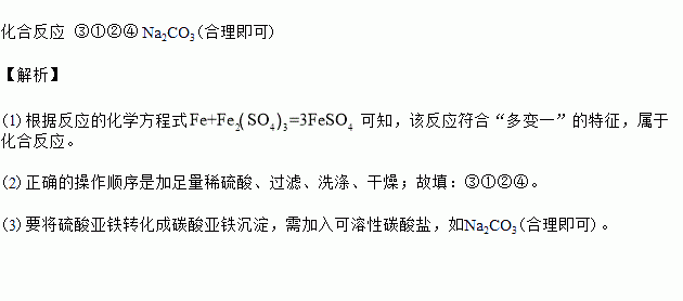 (2)操作I包括:①过滤,②洗涤,③加足量稀硫酸,④干燥。正确的操作顺序是___________(填序号);