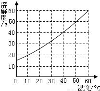 | 温度/℃ | 0 | 20 | 40 | 60 |