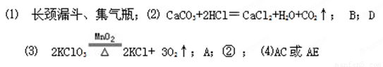 (2)实验室制取二氧化碳的化学方程式是 。应选择的气体发生装置是 ,气体收集装置是 。