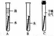 解答:解:(1)探究铁生锈的条件,根据控制变量法可以在A试管中加入水,同时加入油来隔绝氧气,而B试管加入适量水,注意将铁钉部分淹没,而C放置在干燥的空气中,这样可以得出铁生锈的条件;