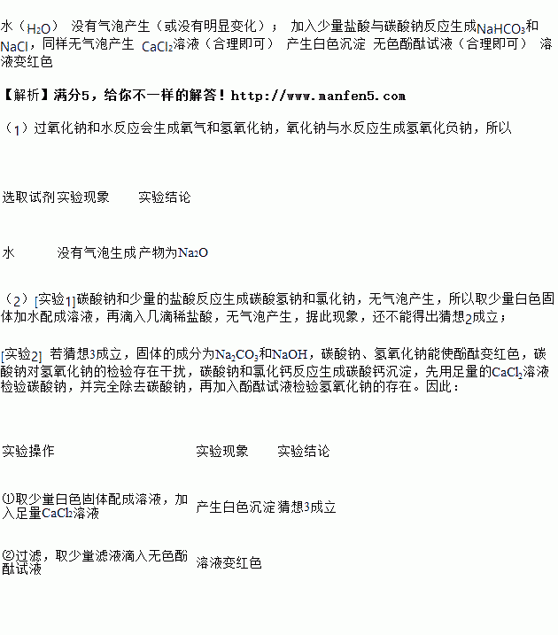 (1)为检验常温下钠与氧气反应的产物,是Na2O还是Na2O2,完成实验方案: