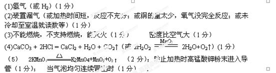 (5)用高锰酸钾制取氧气的化学方程式为 ;实验时应在试管口放一团棉花,其作用是