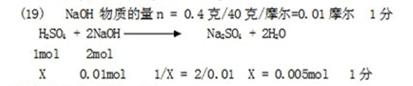 (4)若烧杯中氢氧化钠溶液含溶质0.4克,则需要含溶质多少摩尔的硫酸溶液才能完全中和(根据化学方程式列式计算)?(19)