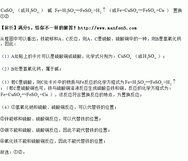 (3)C处卡片中的物质与Fe反应的化学方程式为_____,该反应的基本类型是______反应。