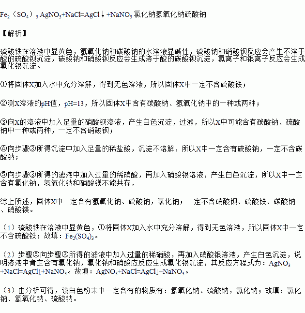 ⑤向步骤③所得的滤液中加入过量的稀硝酸,再加入硝酸银溶液,产生白色沉淀。