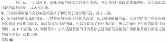 | D.⑥操作中,加入盐酸的目的是除去过量的氢氧化钠和碳酸钠,将滤液的pH调为7 |