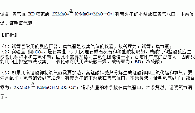(3)实验室用高锰酸钾制取氧气,该反应的化学方程式为_____,氧气验满的方法为____。