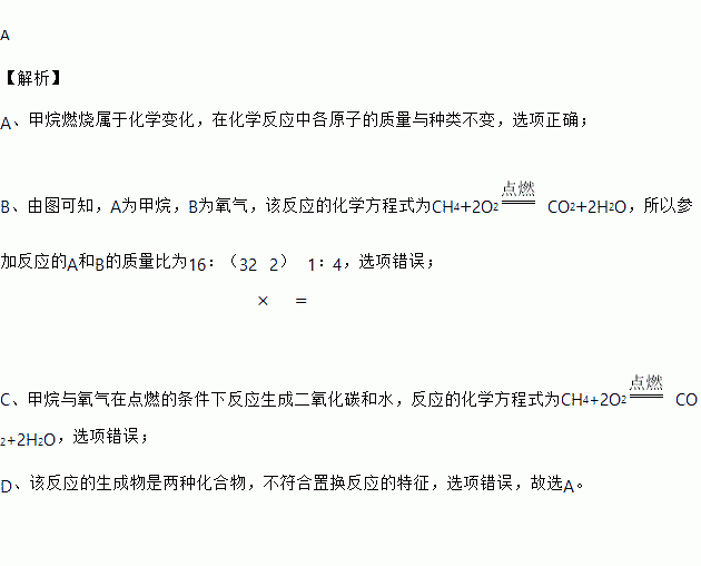 我国是世界上第一个在海域成功试采可燃冰的国家,可燃冰主要含有甲烷水合物,用作燃料时 反应的微观示意图如图,下列说法正确的是( )