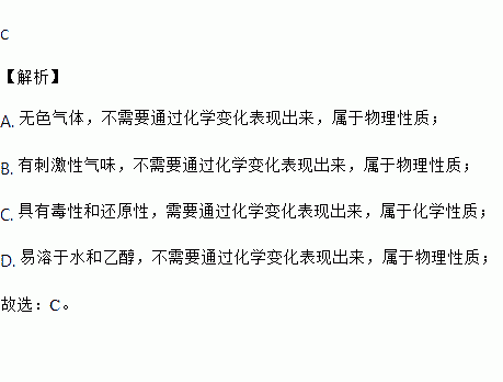 C.具有毒性和还原性 D.易溶于水和乙醇