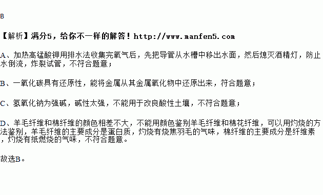 D.通过看颜色鉴别羊毛纤维和棉花纤维