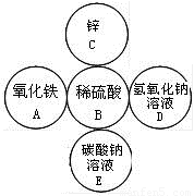 解答:解:(1)根据五种物质中锌能与稀硫酸发生置换反应,氢氧化钠溶液能与稀硫酸发生中和反应,碳酸钠溶液能与稀硫酸反应生成硫酸钠、水和二氧化碳,除此之外再无其它化学反应发生;即上述五种五种间,稀硫酸能与其它四种物质发生反应,其余物质间均不反应,则可得如图的图示: