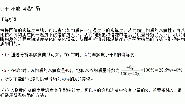 (2)在t2℃时,_____(填“能”或“不能”)配成溶质质量分数为40%的A的溶液。