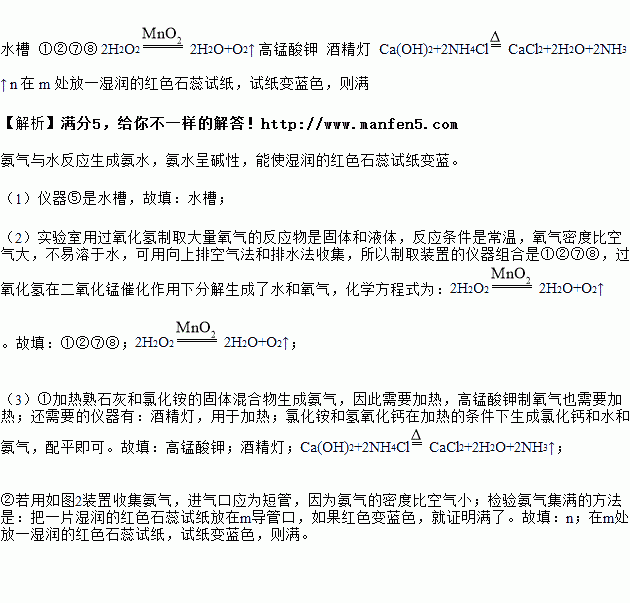 ¢ÚÈôÓÃÈçͼ 2 ×°ÖÃÊÕ¼¯°±Æø£¬½øÆø¿ÚӦΪ______________¶Ë£¨Ñ¡Ìî¡°m¡±»ò¡°n¡±£©£¬¼ìÑé°±Æø¼¯ÂúµÄ·½·¨ÊÇ_________¡£