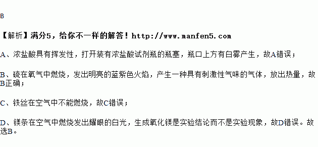 D. 镁条在空气中燃烧发出耀眼的白光,生成氧化镁