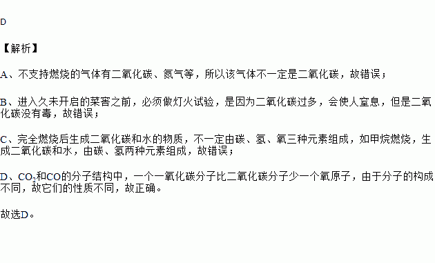 D.一氧化碳和二氧化碳化学性质不同,是因为它们的分子构成不同