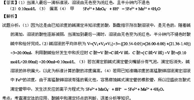 (1)滴定时选用酚酞试液作指示剂,如何判断滴定达到终点 。