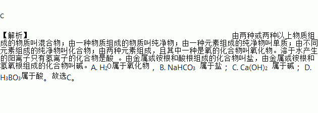 A. H2O B. NaHCO3 C. Ca(OH)2 D. H3BO3