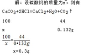 Æ·ÈÜÓÚÊÊÁ¿Ë®£¬¼ÓÈë×ãÁ¿µÄÑÎËᣬ³ä·Ö·´Ó¦ºó£¬Éú³É0.132g¶þÑõ»¯Ì¼£®Çë¼ÆËã10g¸ÃÑùÆ·Öк¬Ì¼Ëá¸ÆµÄÖÊÁ¿ÊǶàÉÙ£¿ £¨¼ÆËã¹ý³ÌдÔÚ´ðÌâÖ½ÉÏ£©¡£