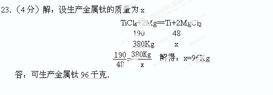 钛(Ti)是广泛应用于航空、航海等领域的一种重要金属。在一定条件下,钛由四氯化钛(TiCl4)和金属镁反应而制得。现有380Kg四氯化钛,可生产金属钛多少千克?