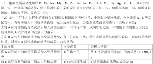 С¸ÕÉè¼ÆÊµÑé̽¾¿Ìú¡¢Í¡¢ÒøÈýÖÖ½ðÊôµÄ»î¶¯ÐÔ˳Ðò²¢·ÖÎöÏà¹ØÎÊÌâ¡£ÇëÌî¿Õ£º