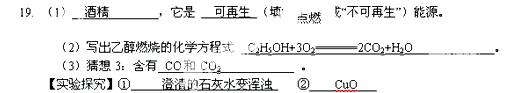 | ①将乙醇燃烧的产物通入盛有足量的石灰水的广口瓶中。 | 。 | 猜想3成立 |