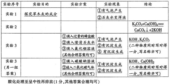 | 实验1 | | ① ② | 草木灰的主要成分是碳酸钾 | |